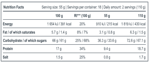 - 18г протеина в 2-х порциях(на 110 грамм)