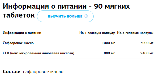 - Состав: сафлоровое масло, капсула (желатин, влагоудерживающий агент E422, вода).